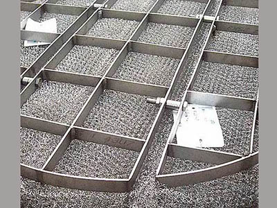 表面積大的421型的分離效果較好。931型是用于分離特別臟和粘的霧沫,或者在液體霧沫負(fù)荷大的地方使用。兩種樣式直徑均為0.011吋的細(xì)絲編織而成。用其它尺寸金屬絲編織的絲網(wǎng)及其特性只能在一般操作條件下使用。修改絲網(wǎng)結(jié)構(gòu),即可改進(jìn)其性能特點(diǎn),除霧沫效率,排液速度,煙氣的處理能力以及壓力降。在速度范圍很大的容器里,分離效率都高于99.9%。